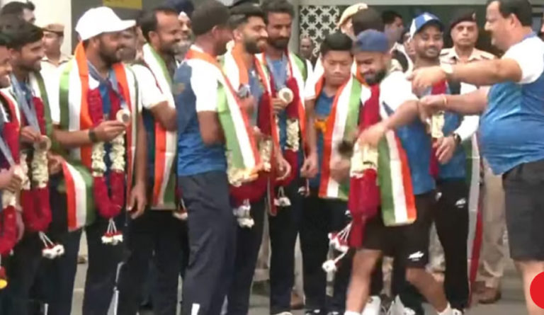 कांस्य पदक जीतकर स्वदेश लौटी भारतीय हॉकी टीम का दिल्ली एयरपोर्ट पर हुआ स्वागत