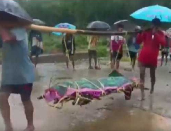 लगातार बारिश से बाढ़ जैसे हालात, शव को 20 किमी दूर कंधे पर लेकर पहुंचे ग्रामीण
